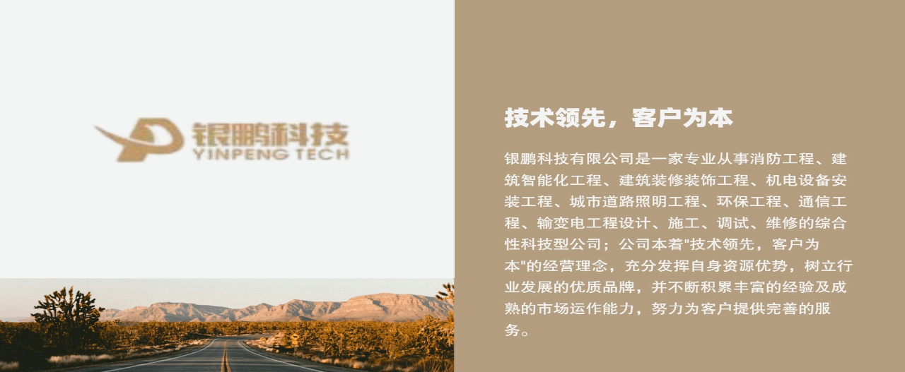 銀鵬科技有限公司是一家專(zhuān)業(yè)從事消防工程、建筑智能化工程、建筑裝修裝飾工程、機(jī)電設(shè)備安裝工程、城市道路照明工程、環(huán)保工程、通信工程、輸變電工程設(shè)計(jì)、施工、調(diào)試、維修的綜合性科技型公司。公司具有建設(shè)主管部門(mén)頒發(fā)的《建筑業(yè)企業(yè)資質(zhì)證書(shū)》:建筑裝修裝飾工程專(zhuān)業(yè)承包壹級(jí)、消防設(shè)施工程專(zhuān)業(yè)承包壹級(jí)、電子與智能化工程專(zhuān)業(yè)承包壹級(jí)、防水防腐保溫工程專(zhuān)業(yè)承包壹級(jí)、建筑機(jī)電安裝工程專(zhuān)業(yè)承包壹級(jí)資質(zhì)、通信工程總承包貳級(jí)、市政公用工程施工總承包貳級(jí)、建筑工程施工總承包貳級(jí)、古建筑工程專(zhuān)業(yè)承包貳級(jí)、機(jī)電工程施工總承包貳級(jí)、輸變電工程貳級(jí)、特種工程(特種防雷)專(zhuān)業(yè)承包不分等級(jí)、智能...